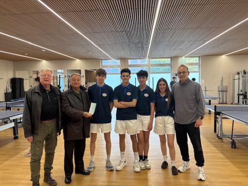 Le Président et le trésorier de l’association des anciens du lycée Arago ont remis un chèque de 250 euros pour permettre à l’équipe de tennis de table du lycée de participer au France.